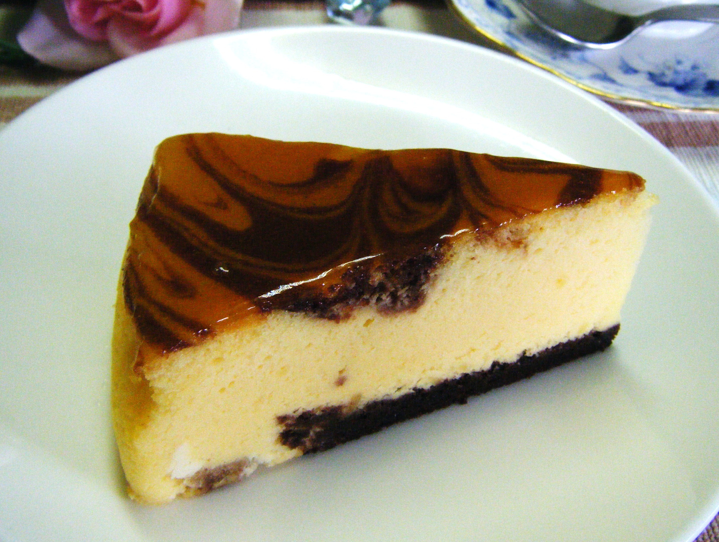 詳細説明)濃厚なフランス産最高級チーズ を長時間かけて丁寧に丁寧に蒸しあげ、濃厚チョコスポンジ、隠し味にほのかに酸味が利いたヨーグルトを加えて仕上げたシェフ自信の「極上チーズケーキ」!!見た目にも美味しい、マーブル模様に焼き上げました。